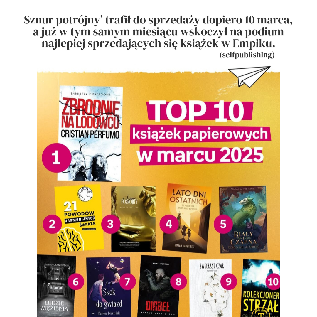 Sznur potrójny to emocjonalny nokaut – z każdą stroną zaciska się na gardle czytelnika coraz mocniej, aż do finału, który miażdży serce i podważa wszystko, co wydawało się pewne.