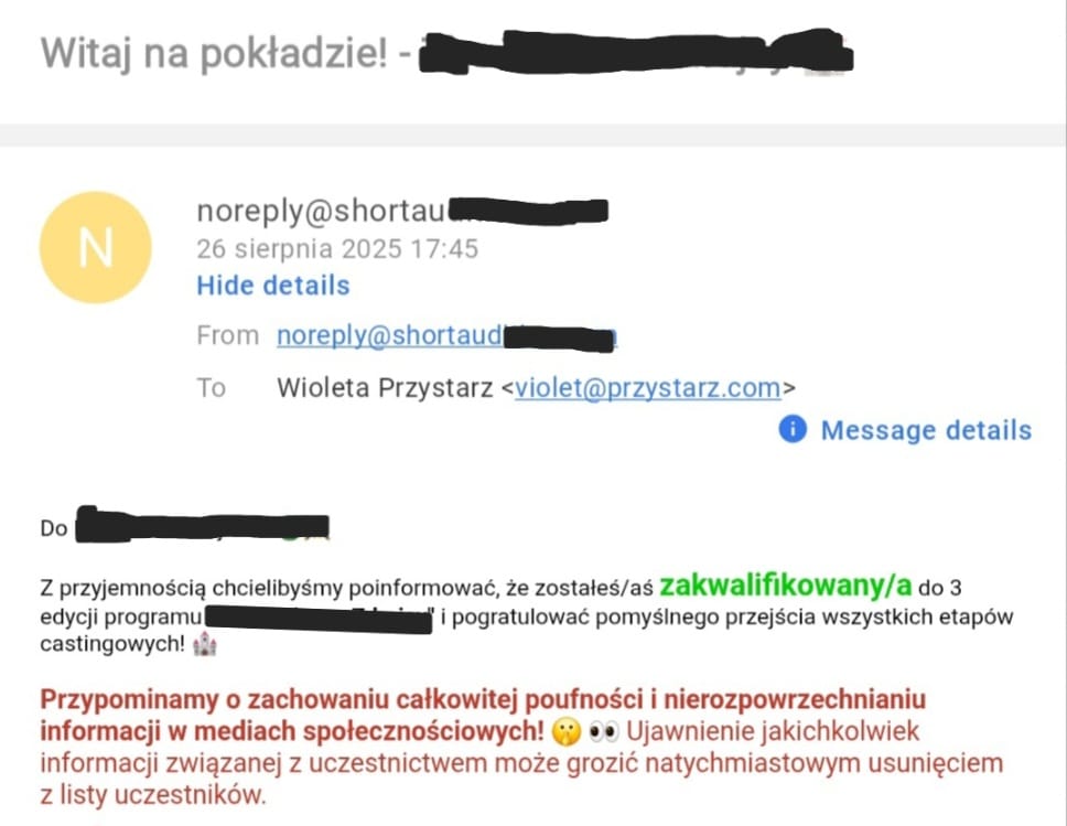 Autorka oficjalnie znalazła się w gronie uczestników jednego z najgłośniejszych reality show w ramówce TVN – programu, który bije rekordy oglądalności i staje się medialnym fenomenem. Tym razem nie ma mowy o przypadku czy niepewności: jej obecność na ekranie jest faktem, a to oznacza, że jej książka Sznur potrójny już wkrótce trafi do milionowej publiczności.