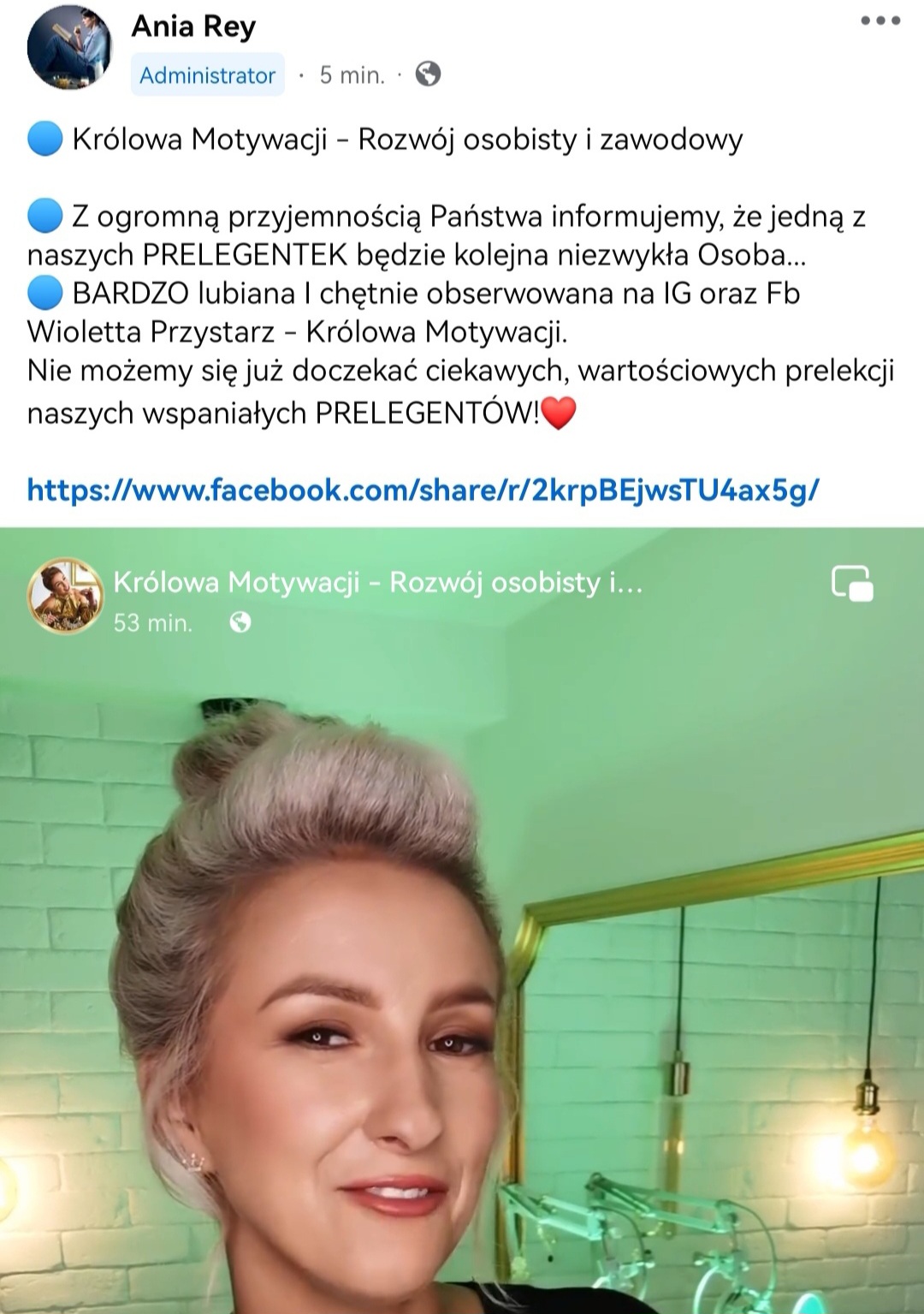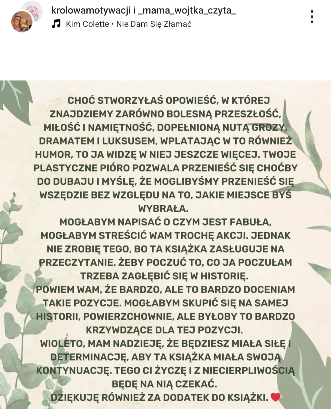Jej profile @krolowamotywacji śledzą celebryci, aktorzy, piosenkarze i influencerzy o dużych zasięgach. Treści dotyczące książki regularnie trafiają do osób medialnych, co stwarza realny potencjał do współprac, viralowych zasięgów i wsparcia promocyjnego ze strony znanych nazwisk.
