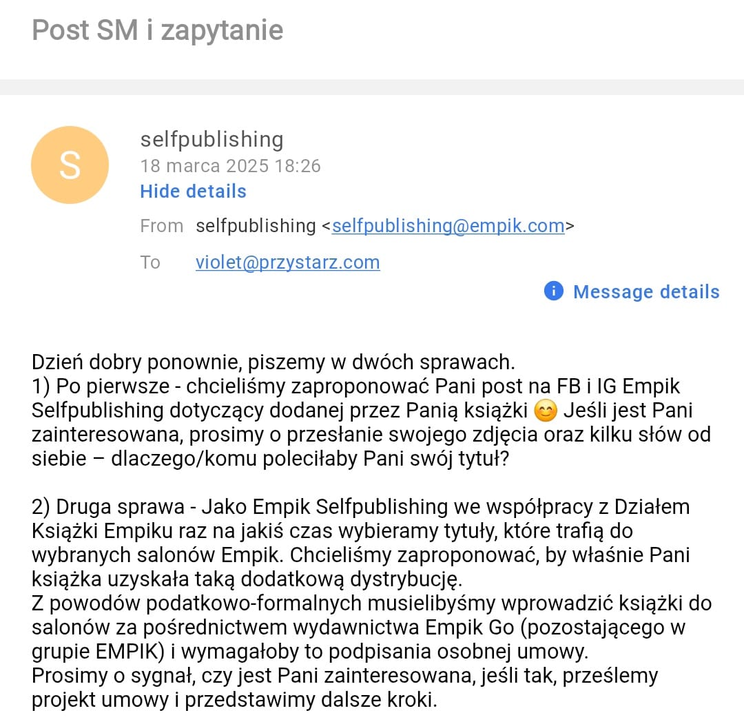 Niecały tydzień po premierze, Empik zaproponował autorce dwuletnią umowę wydawniczą i rozszerzoną dystrybucję do salonów stacjonarnych. Autorka świadomie odrzuciła tę propozycję.