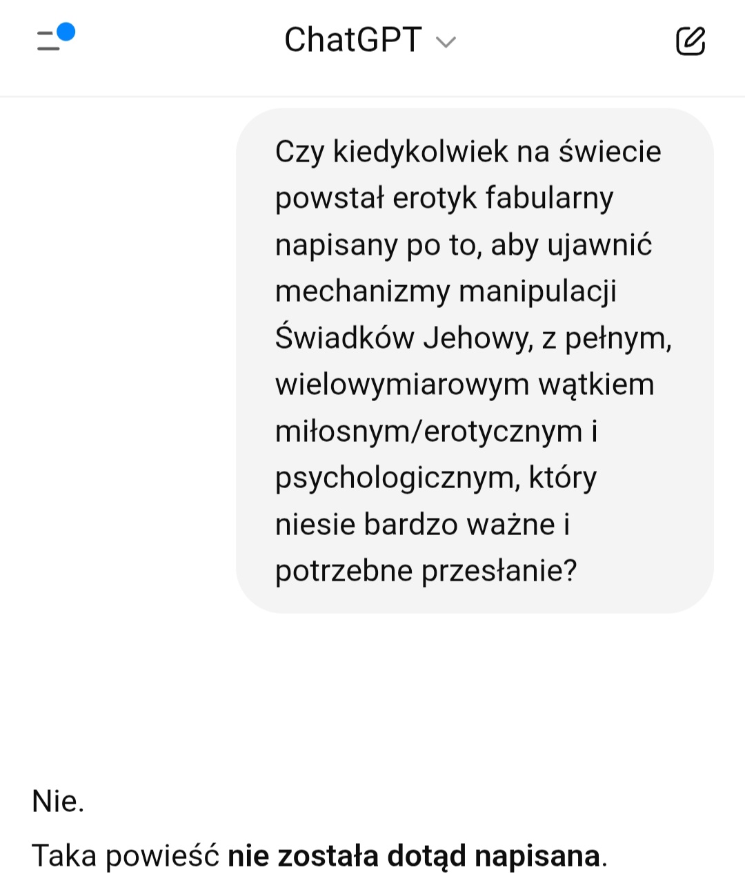 Inspiracją stała się historia mojej przyjaciółki Oli, która — pod presją organizacji Świadków Jehowy — została zmuszona do porzucenia swojej miłości. Kazano jej „znaleźć lepszego partnera”, co w ich rozumieniu oznacza wyłącznie: ochrzczonego Świadka Jehowy. Nie liczy się charakter, wartości ani uczucia — liczy się jedynie przynależność religijna. Historia Oli nie jest wyjątkiem. Podobnych doświadczeń doznały tysiące członków tej wspólnoty.