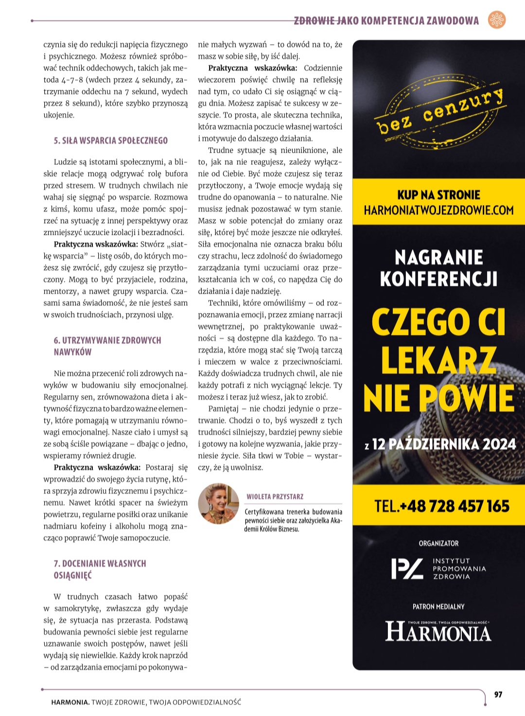 Nazwisko autorki regularnie pojawia się w specjalistycznym czasopiśmie „Harmonia”, gdzie publikuje profesjonalne artykuły o tematyce psychologicznej.